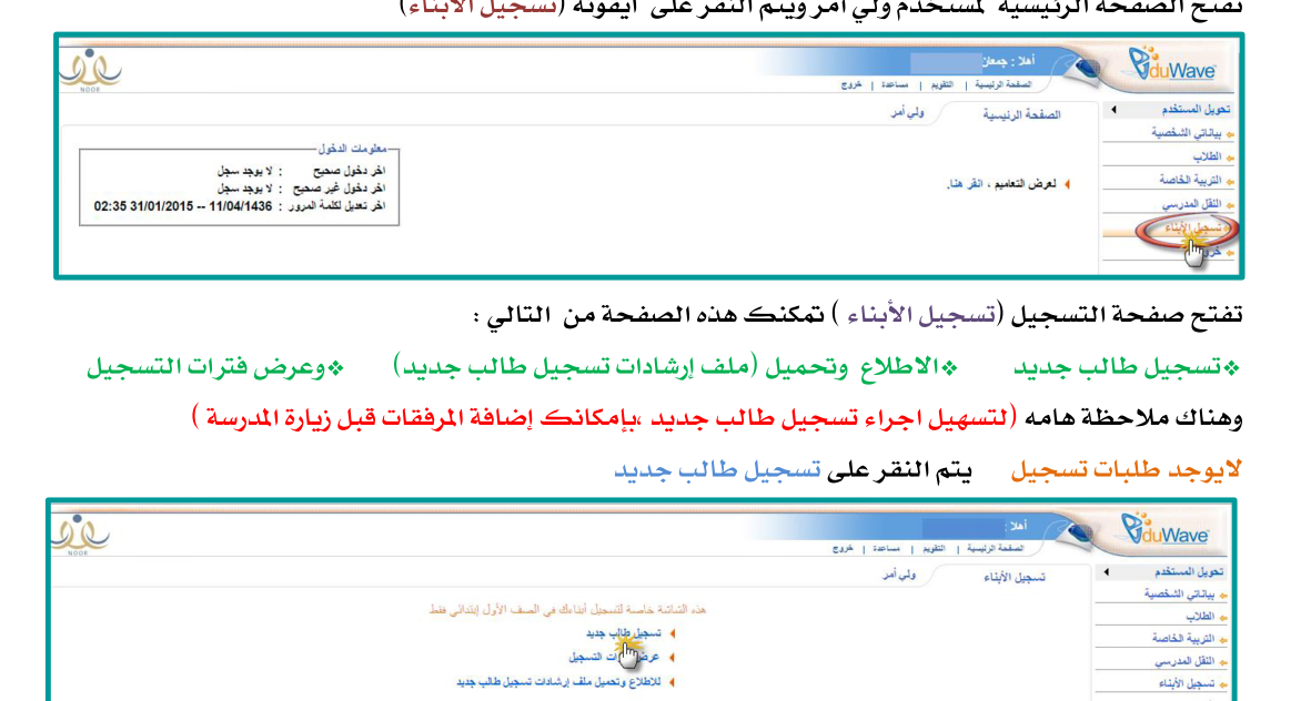 التسجيل في نظام نور ولي الأمر تسجيل طالب جديد ملتقى المعلمين والمعلمات